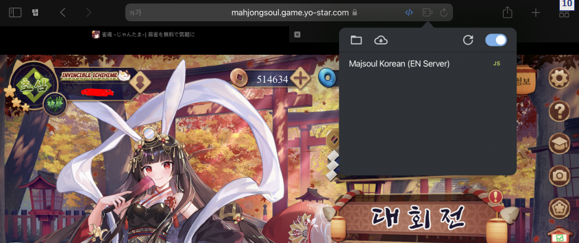 아이폰에서는 사파리를 통해 한글패치해서 작혼(Mahjong Soul)을 플레이하실 수 있는데요